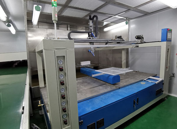 下圖噴涂往復機屬于連桿單邊驅動龍門式直線模組組合,常用在Z軸上加裝旋轉的R軸,可實現(xiàn)五軸和八軸結構。